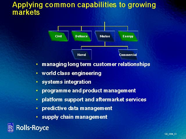 They will be supported by a range of common products, capabilities and knowledge which have grown and developed over the years and which are now enhanced by the acquisition of Vickers. We now have the opportunity to apply these assets even more widely.