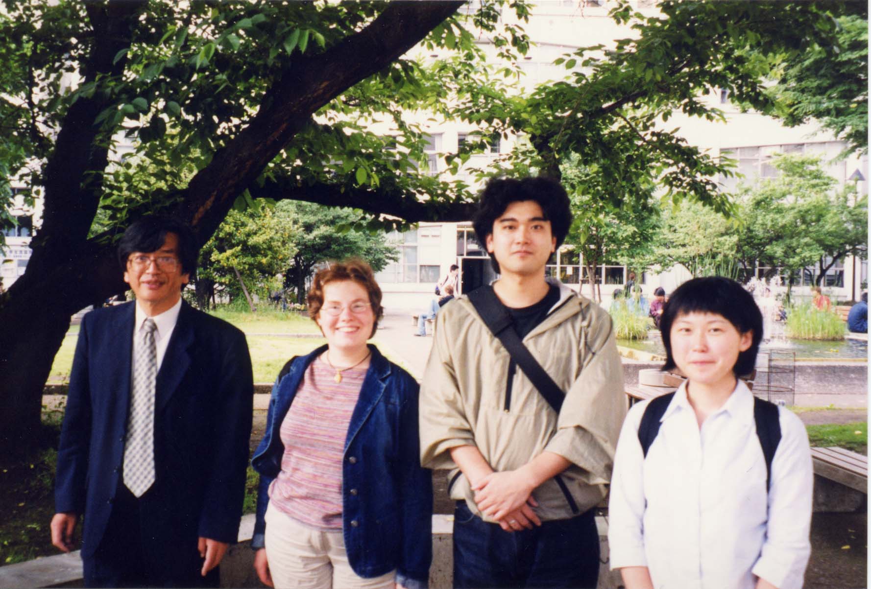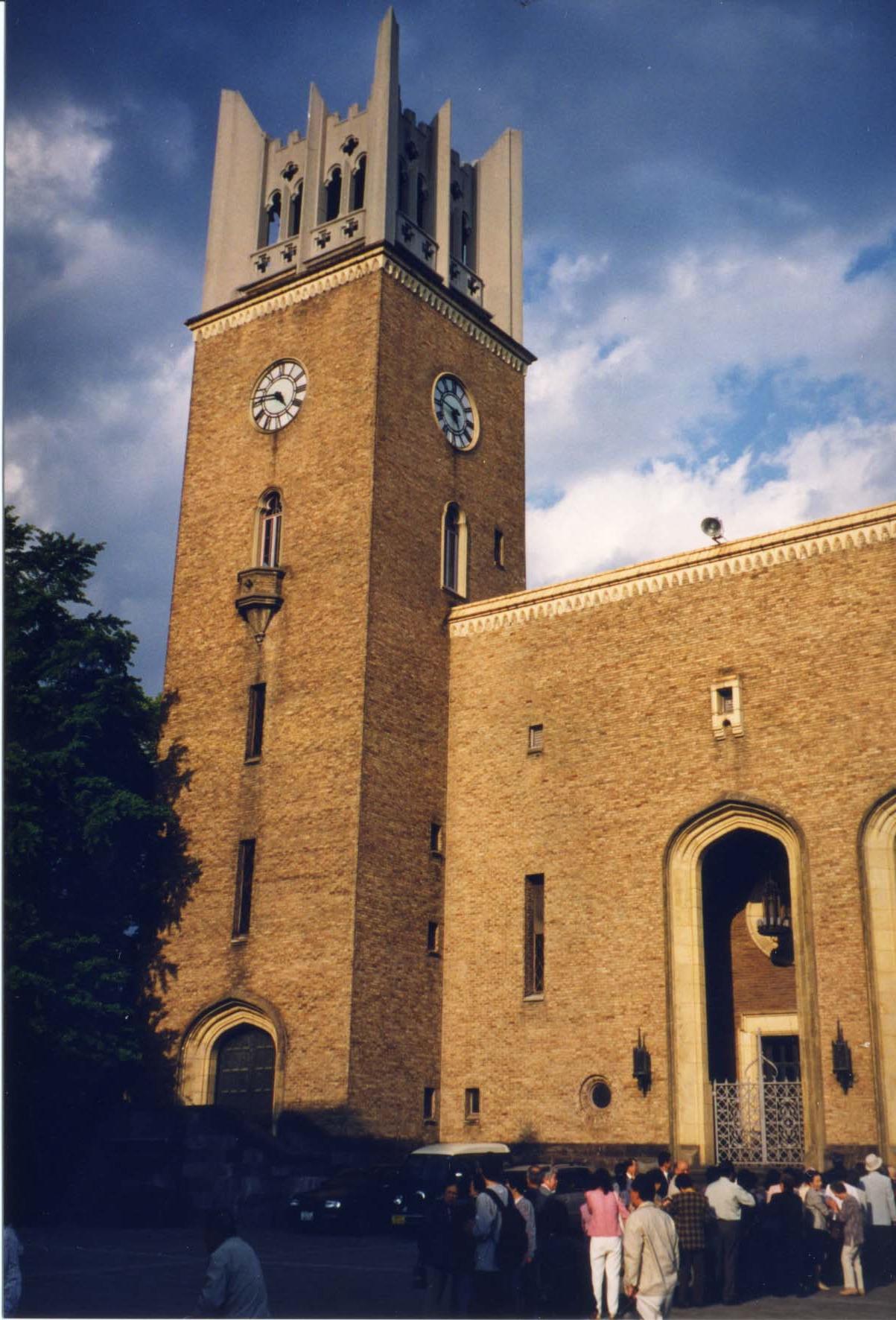 | Professor Saito, Vicky, Takashi Shimada and Kazumi Ochi in the Waseda University grounds | The Waseda main building |