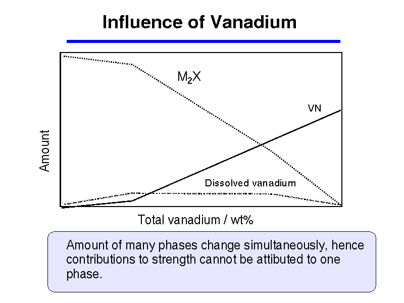 Many components change simultaneously with increase in total vanadium concentration. Hence, a specific region can not be identified where the strength contribution can be attributed to only one component.