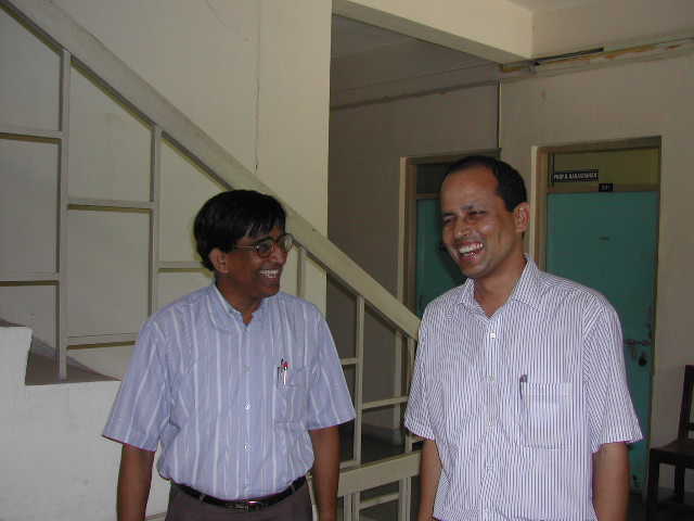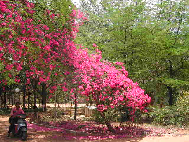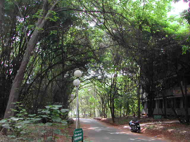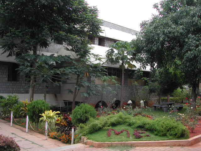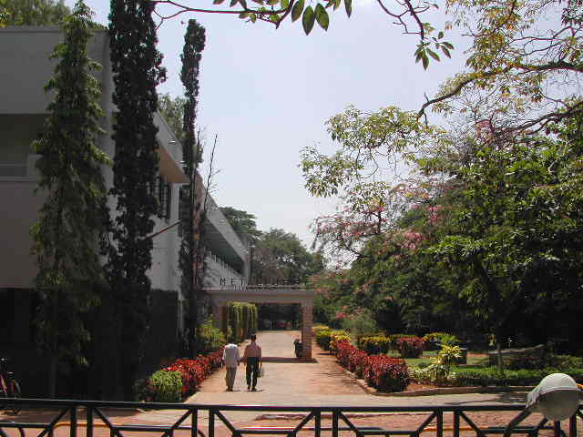 The campus at the IISc is filled with exotic trees, flowers and "wild life" (birds, insects, monkeys, ...). It forms an oasis in the garden city of Bangalore. The whole place is designed for peace and learning; it is perfectly safe to walk alone in the middle of the night. I stayed in the guest house and had a large office in the Mechanical Engineering Department.