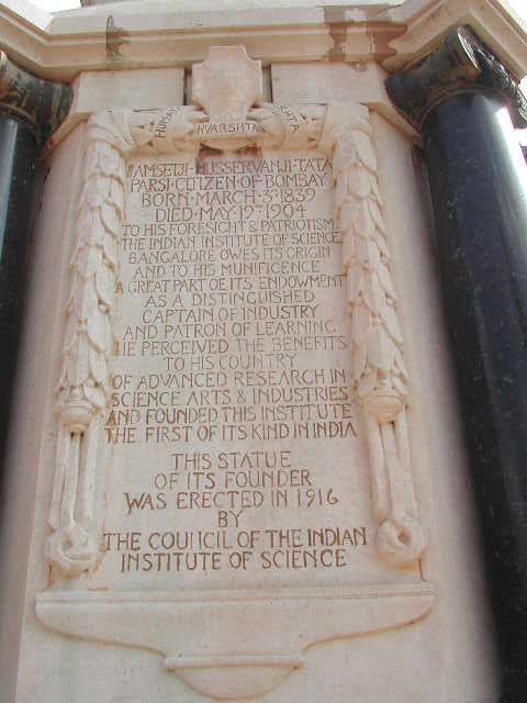 The Institute was founded in 1900 by Tata; the statue below is a memorial to him. The land was donated by the Maharaja of the region.
