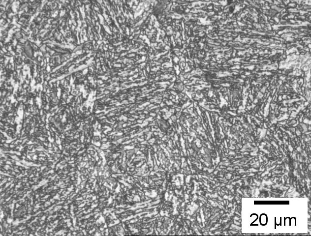 Alloy 1, as-rolled, mixture of bainite, martensite and retained austenite