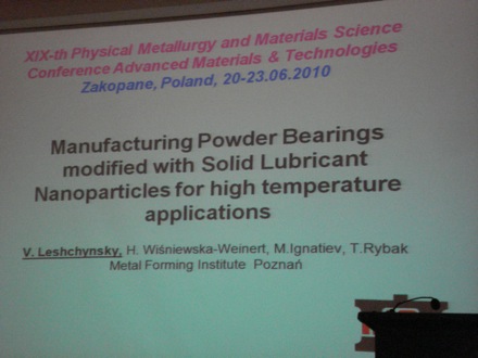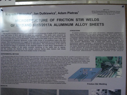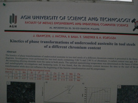 The Physical Metallurgy and Materials Science Conference is held in Poland every three years, on behalf of the Polish Academy of Sciences. The Conference was Chaired by Professor Boguslaw Major.