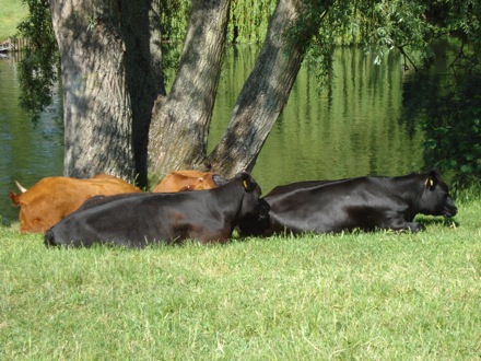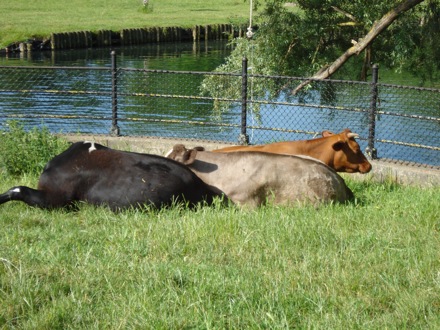 Still cycling, cows on the Common in front of Darwin |