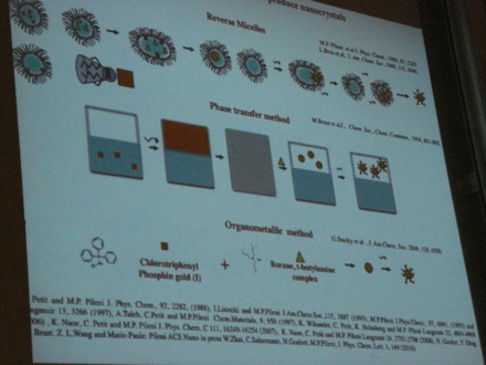 The next talk, on very small gold particles was by Professor Marie-Paule Pileni of the Pierre and Marie Curie University in France |