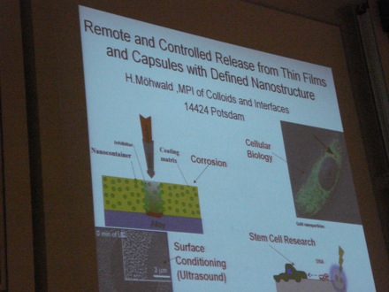 Professor Helmuth Mohwald of the Max Planck Institute of Colloids and Interfaces then described thin films and capsules |