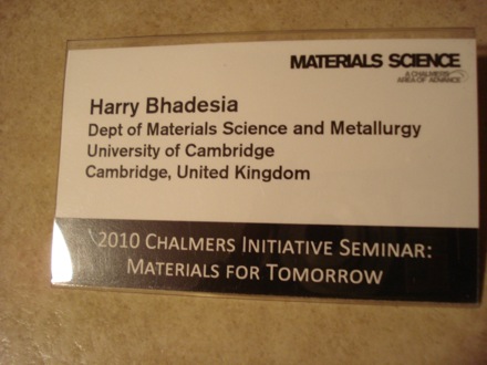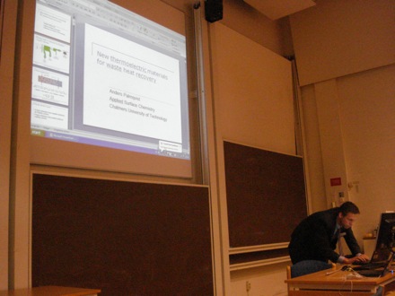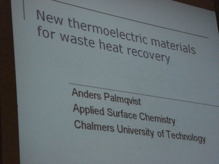 Anders Palmqvist gave a nice talk on thermoelectric materials based on revelations from fundamental physics |