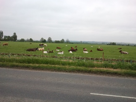 Cows basking in the sun, at a location between Comberton and Barton |
