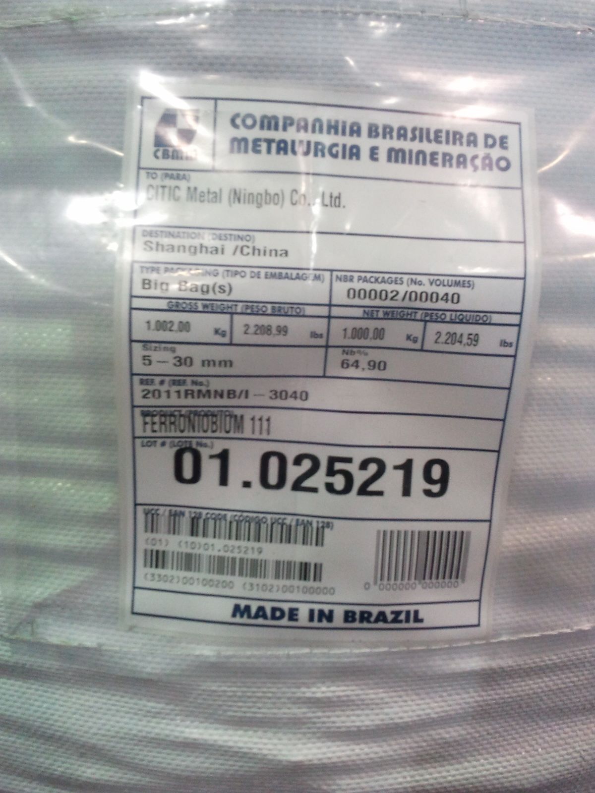 Here for shipment to China