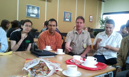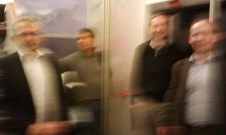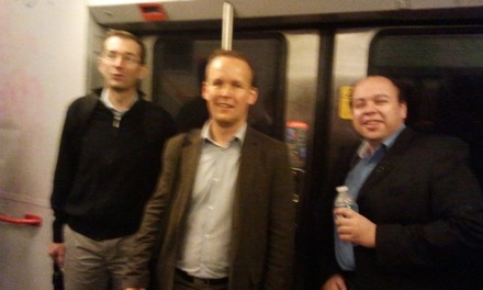 Frederic (ESI), Joachim (ArcelorMittal) and Ahmed (Arcelor Mittal), photograph taken in a train |