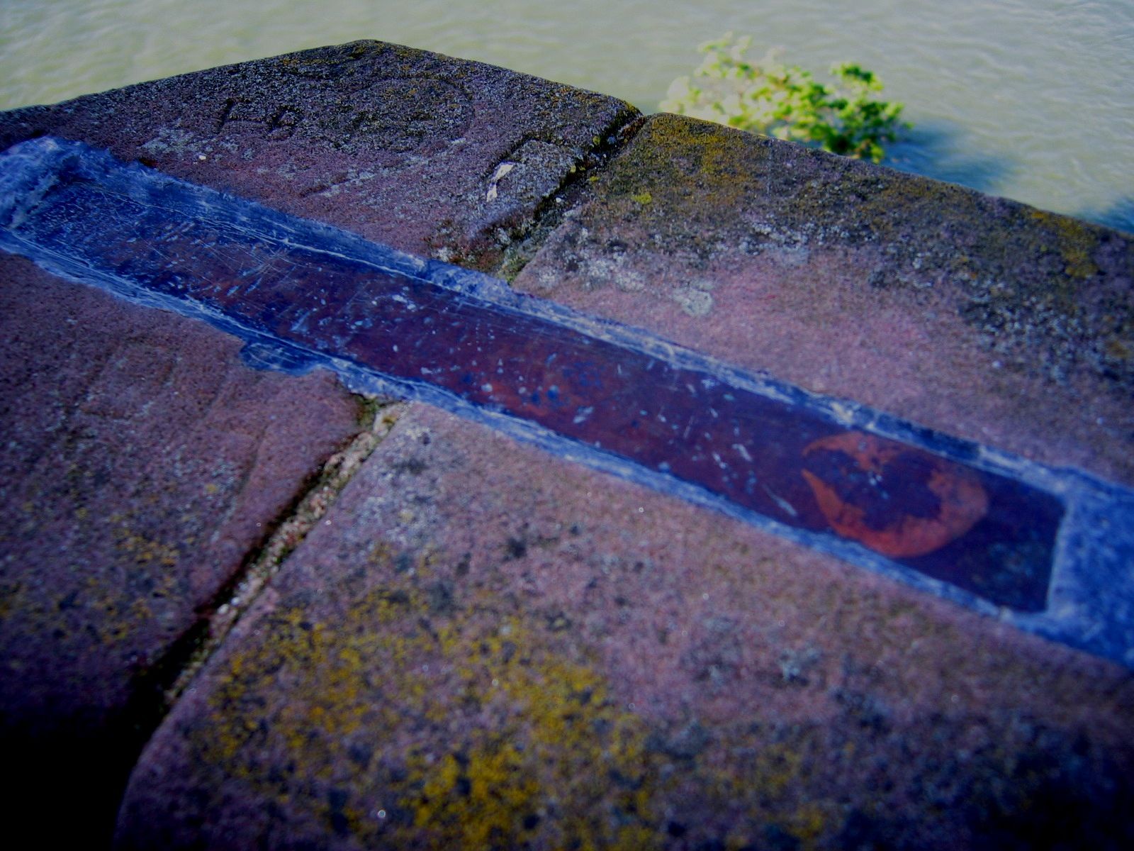 Riverbank stones joined by inserting a thick iron plate embedded in lead Amir - stopover in Basel (Switzerland)