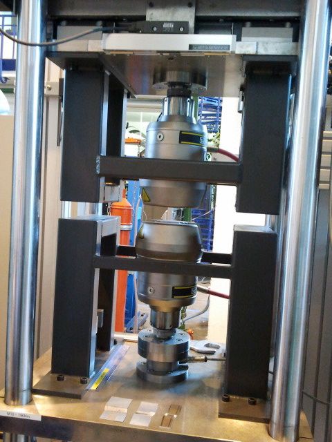 The top chuck moves sideways to accomplish the shear deformation