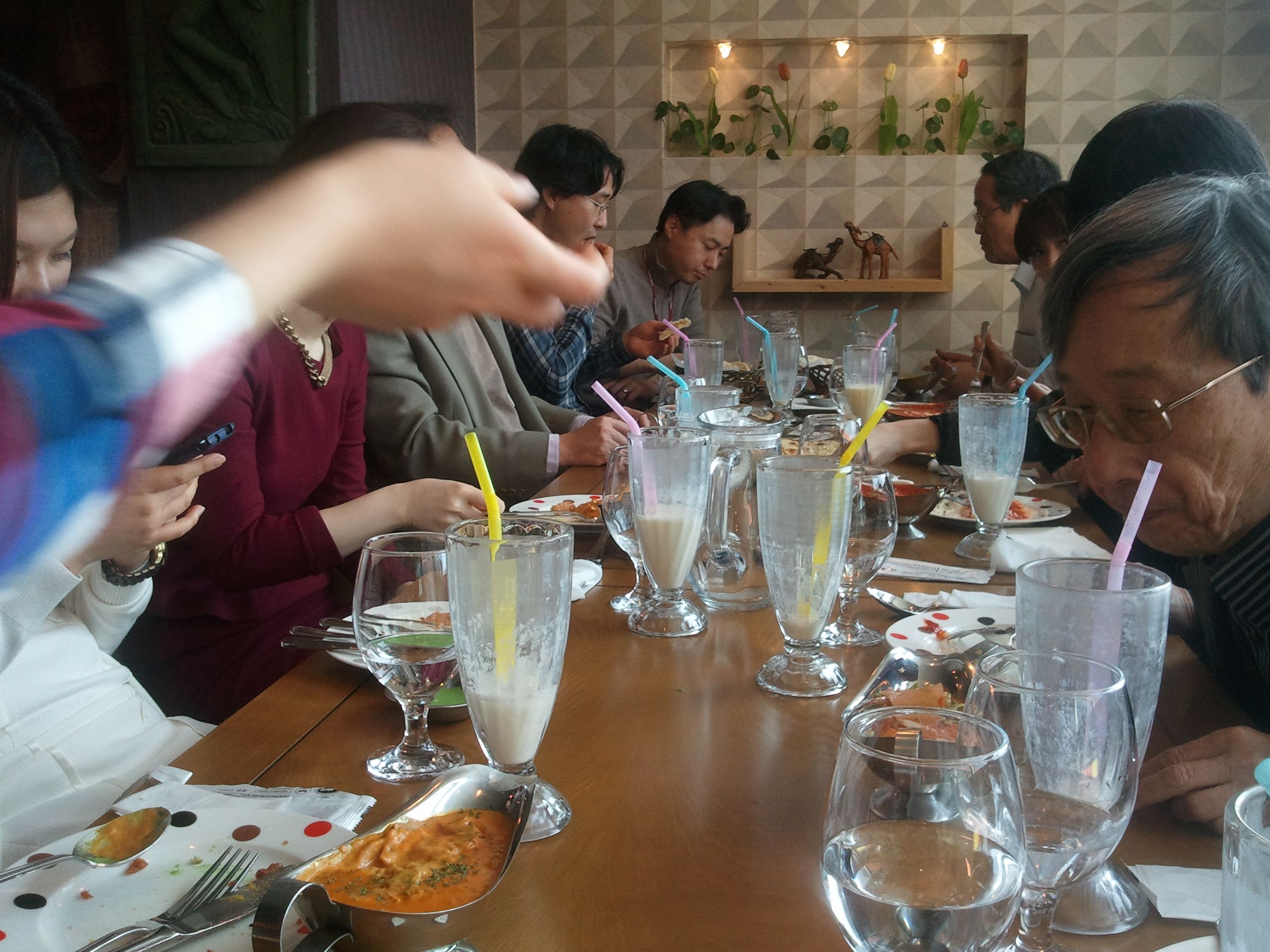 With delcious food and company