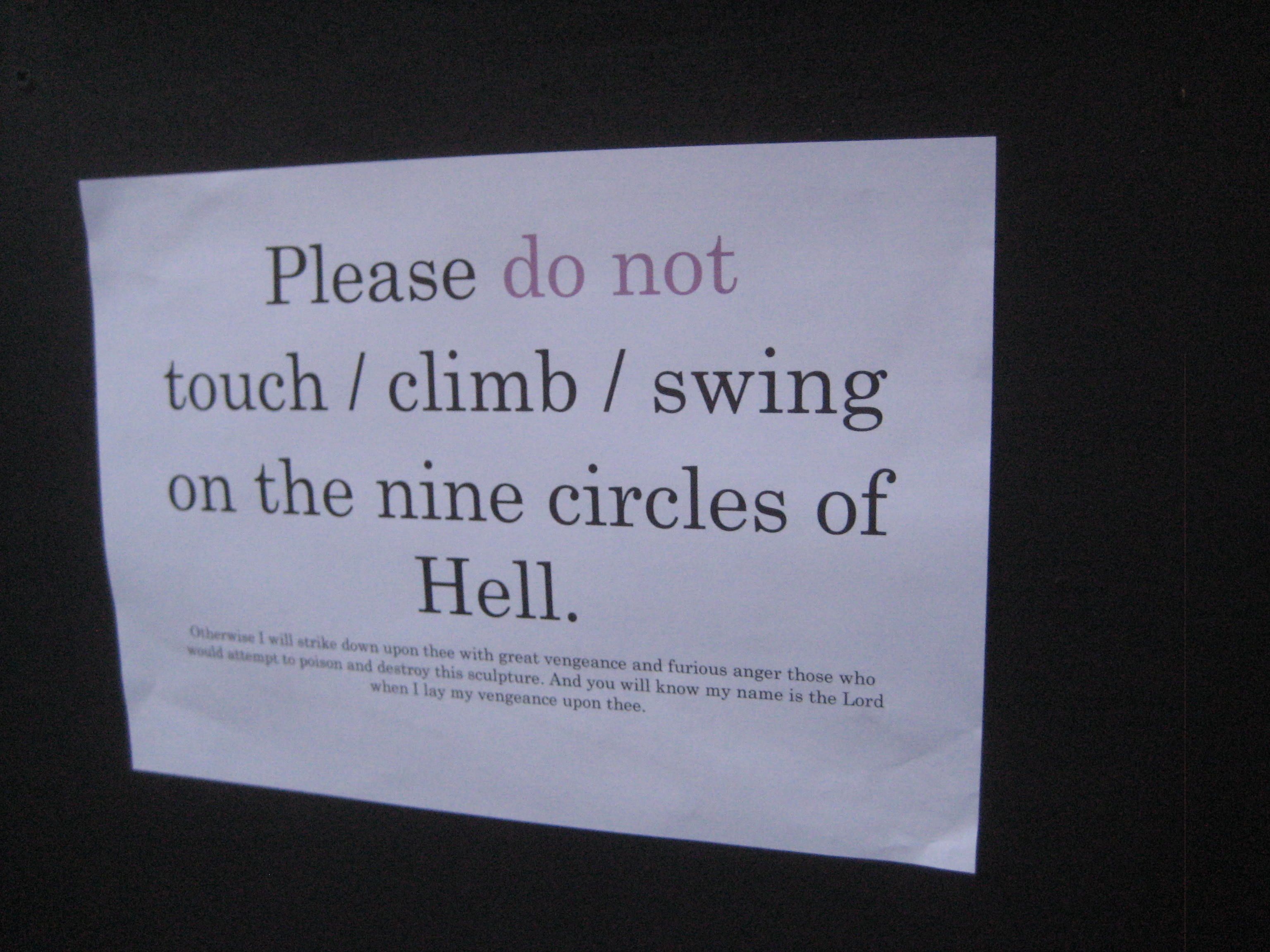 A safety notice at Clare Ball. The theme was The Divine Comedy.