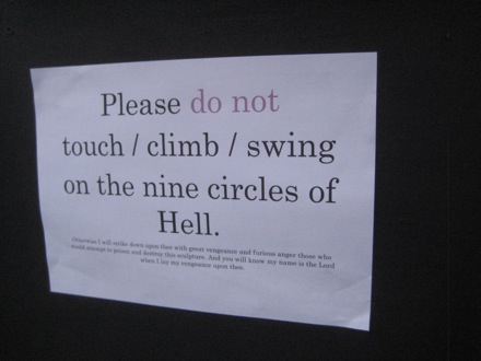 A safety notice at Clare Ball. The theme was The Divine Comedy. |