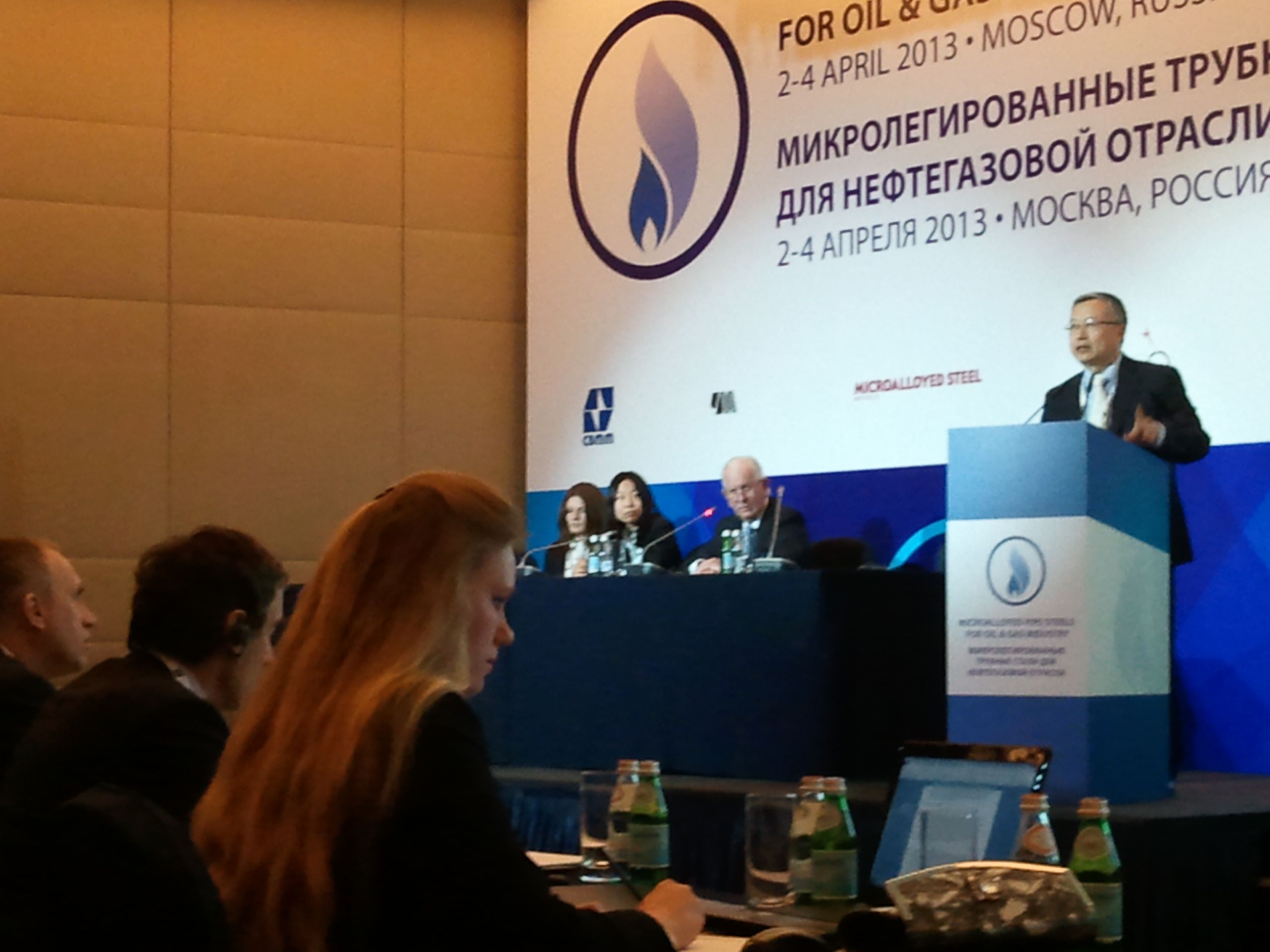 Yan Pei on the podium, waiting for her turn to give the lecture
