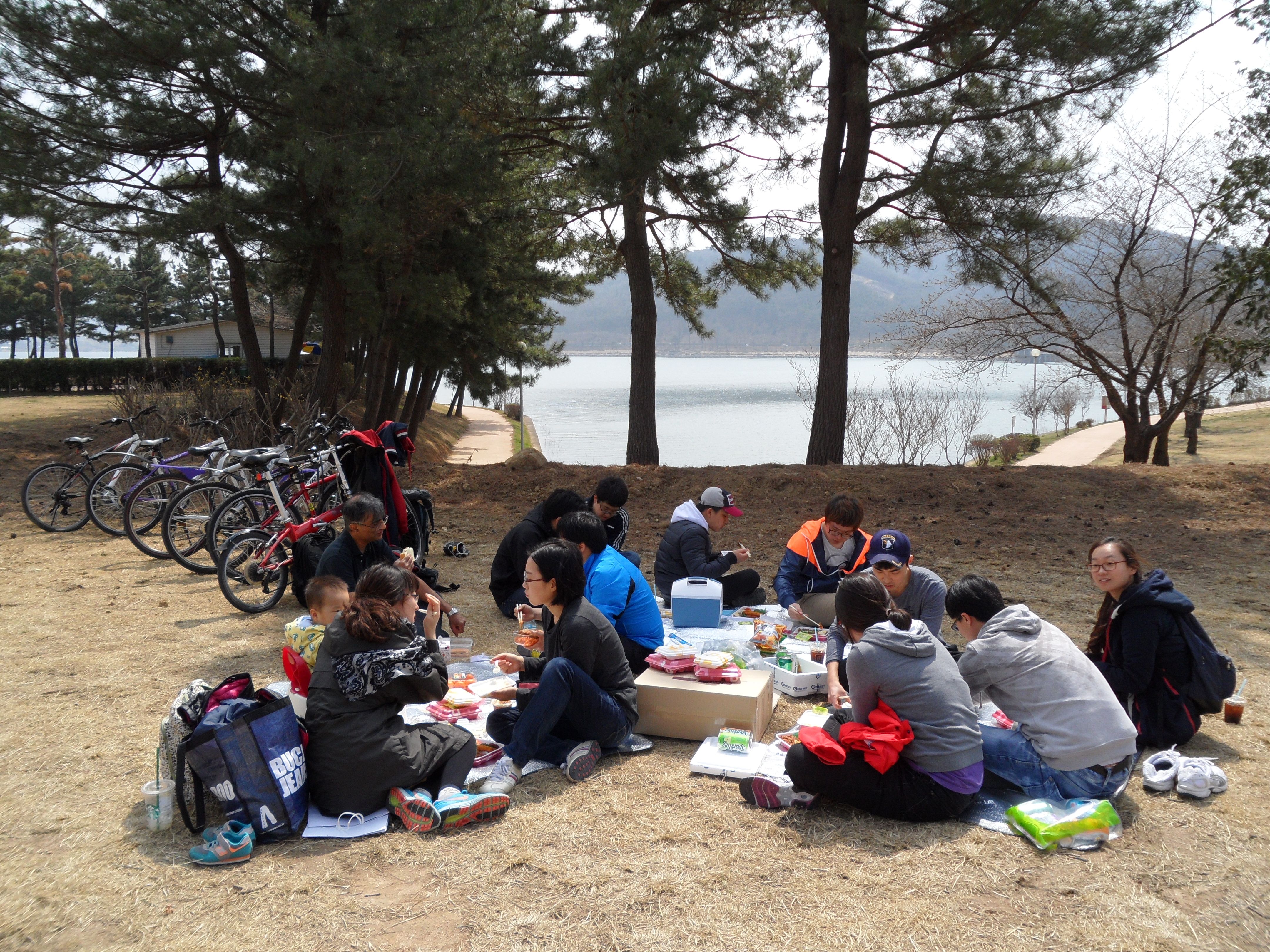 The lake in the background