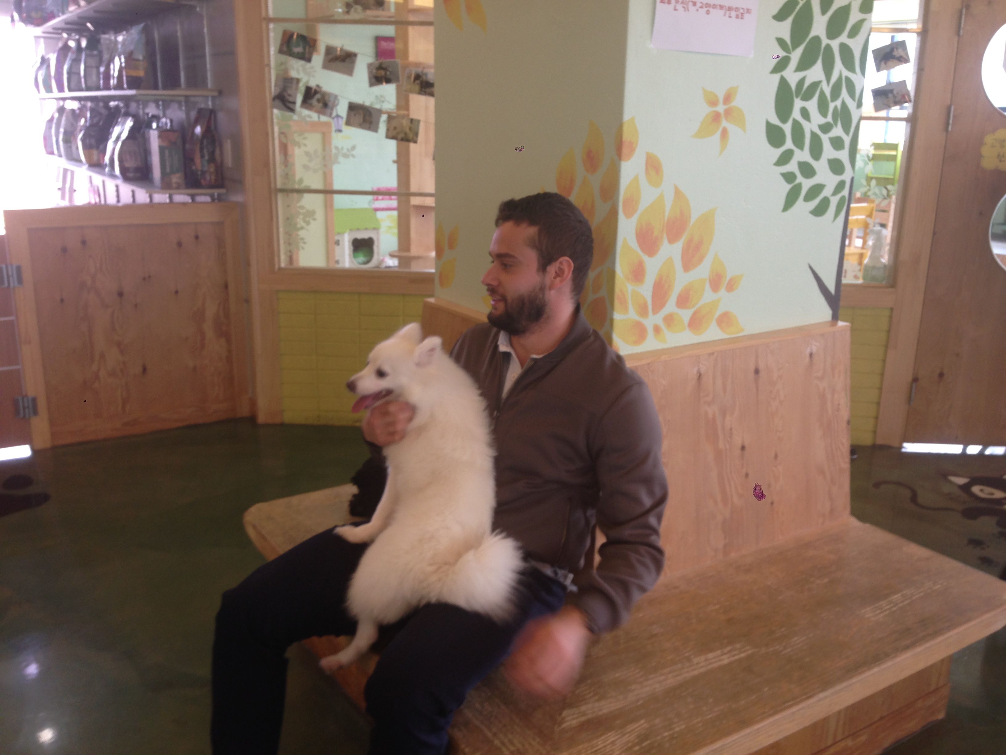 Wilberth Solano and Seung Woo Seo visit a pet cafe, where one can play with dogs and cats whilst having coffee, in Pohang, Republic of Korea