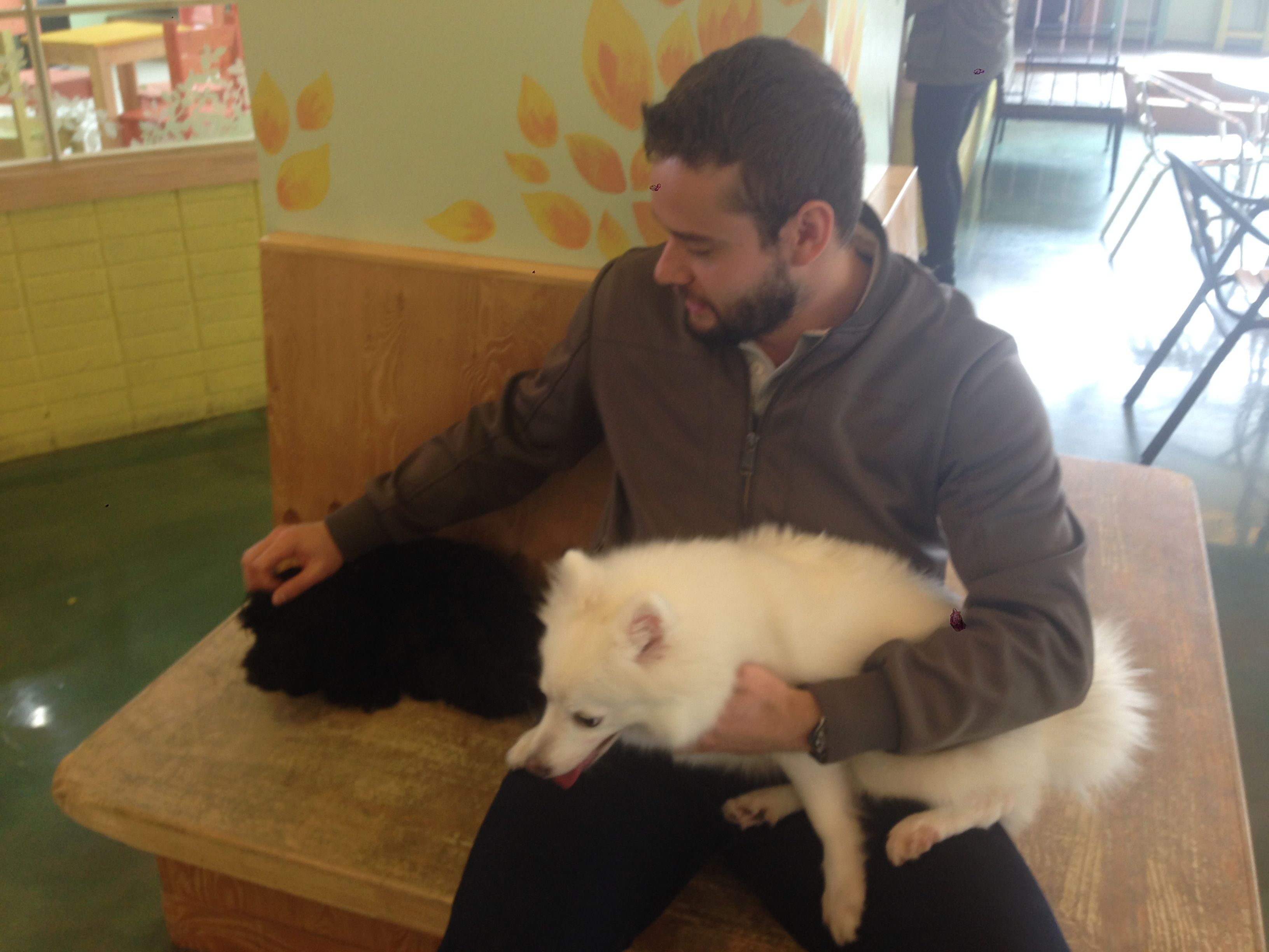 Wilberth Solano and Seung Woo Seo visit a pet cafe, where one can play with dogs and cats whilst having coffee, in Pohang, Republic of Korea