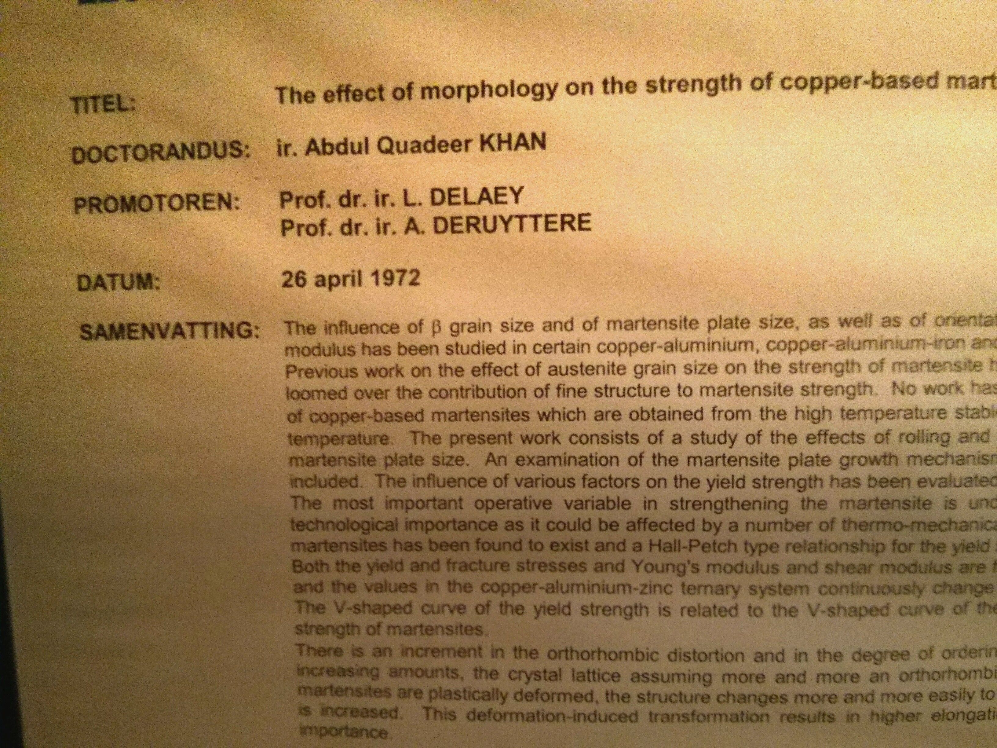 A. Q. Khan, who led the nuclear weapons programme in Pakistan, did his Ph.D. at KU Leuven on martensite