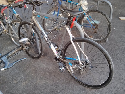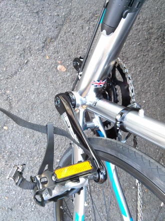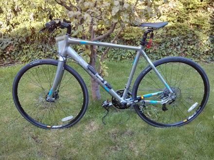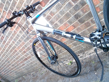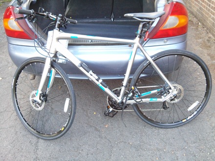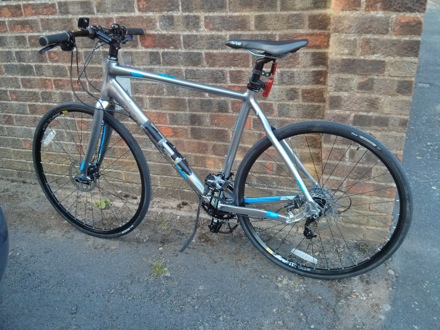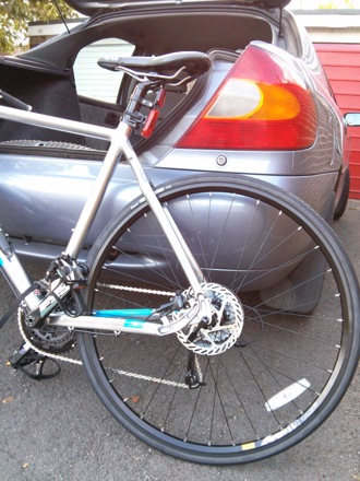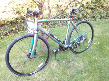 In preparation for the Oxford to Cambridge ride on the 27th of September. Fringe benefit is that it cuts the journey time from Comberton to Cambridge from 35 minutes to 24, without trying hard. The gears, drive train, chain, brakes are made of steel, the frame from other materials, all of which can be found in steel at various concentrations. The tyres contain quadruply twisted steel "bead wire" for better flexibility.