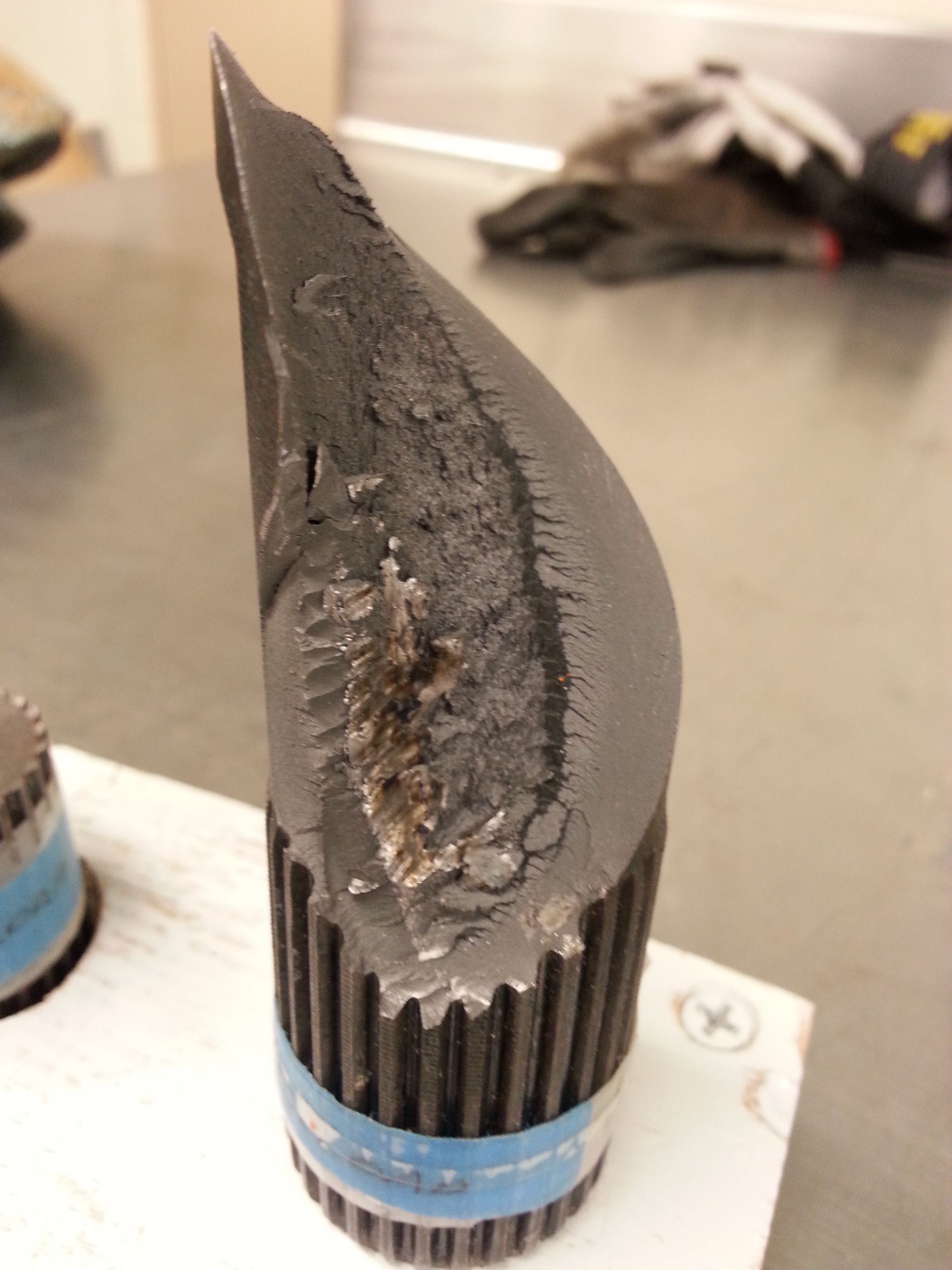Sample showing torsion fatigue failure, just one of a huge collection of failure analyses belonging to Professor David Matlock. Colorado School of Mines, Department of Metallurgical Engineering