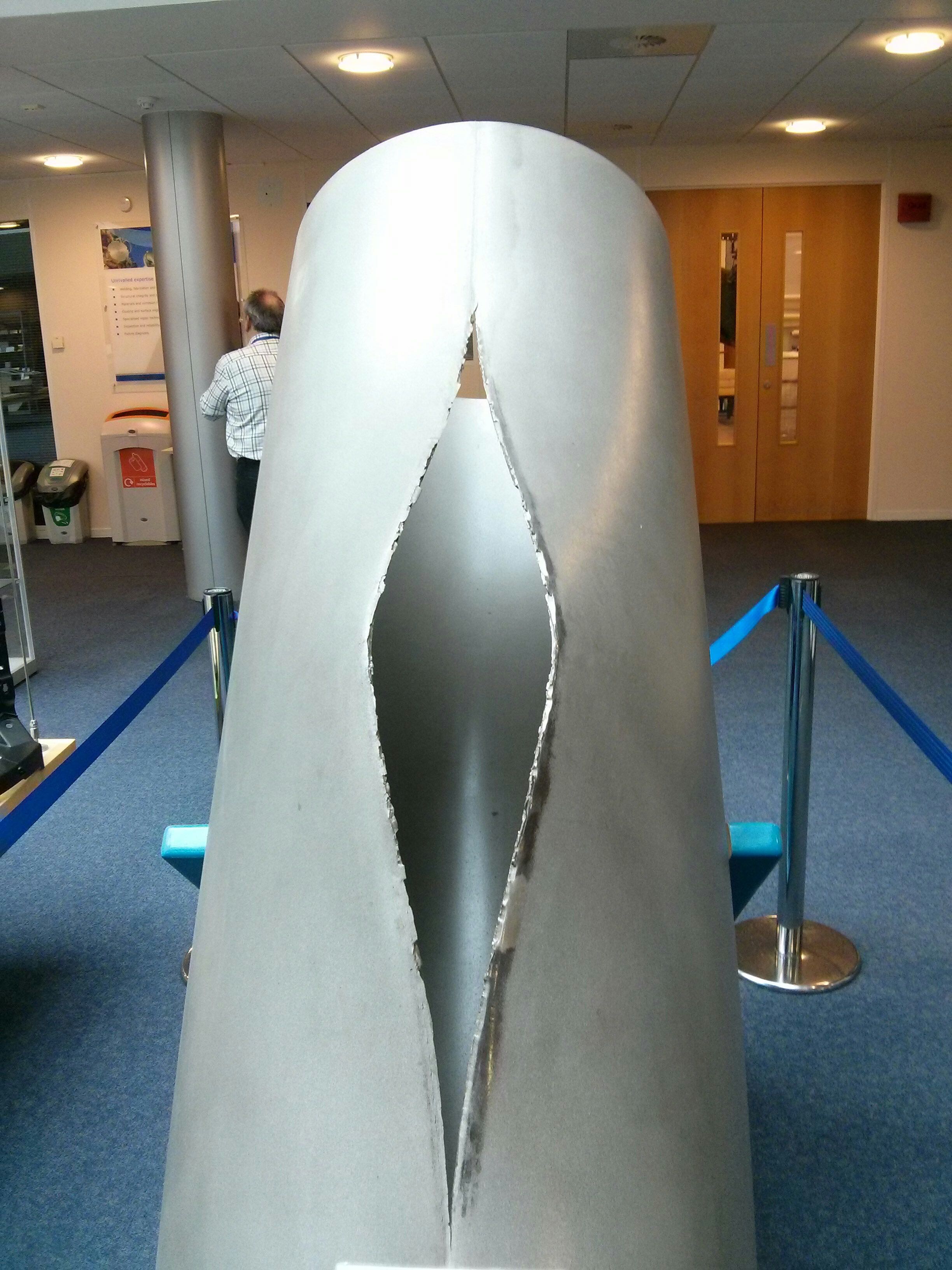 Burst steel pipe at TWI