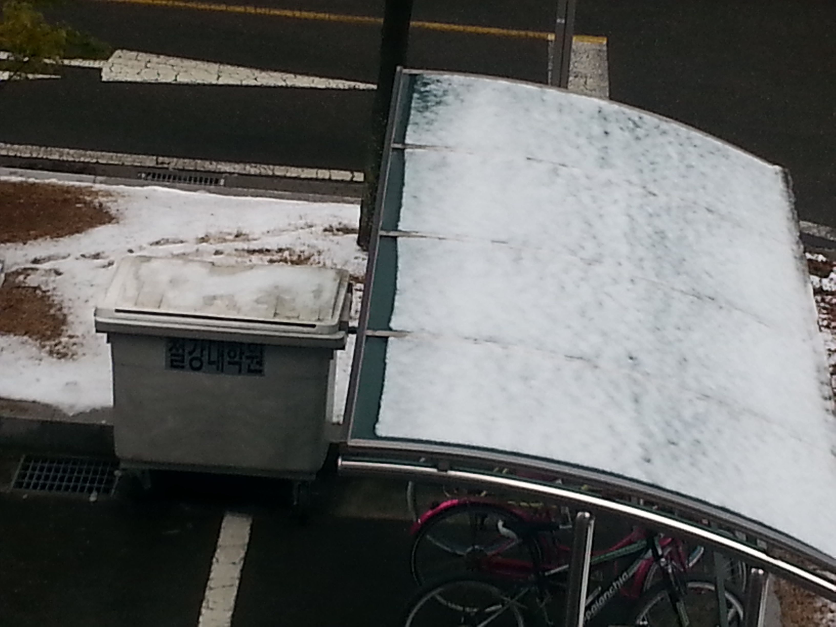 The next day - notice the ice sheet shearing off the roof, under the influence of Newton's gravity