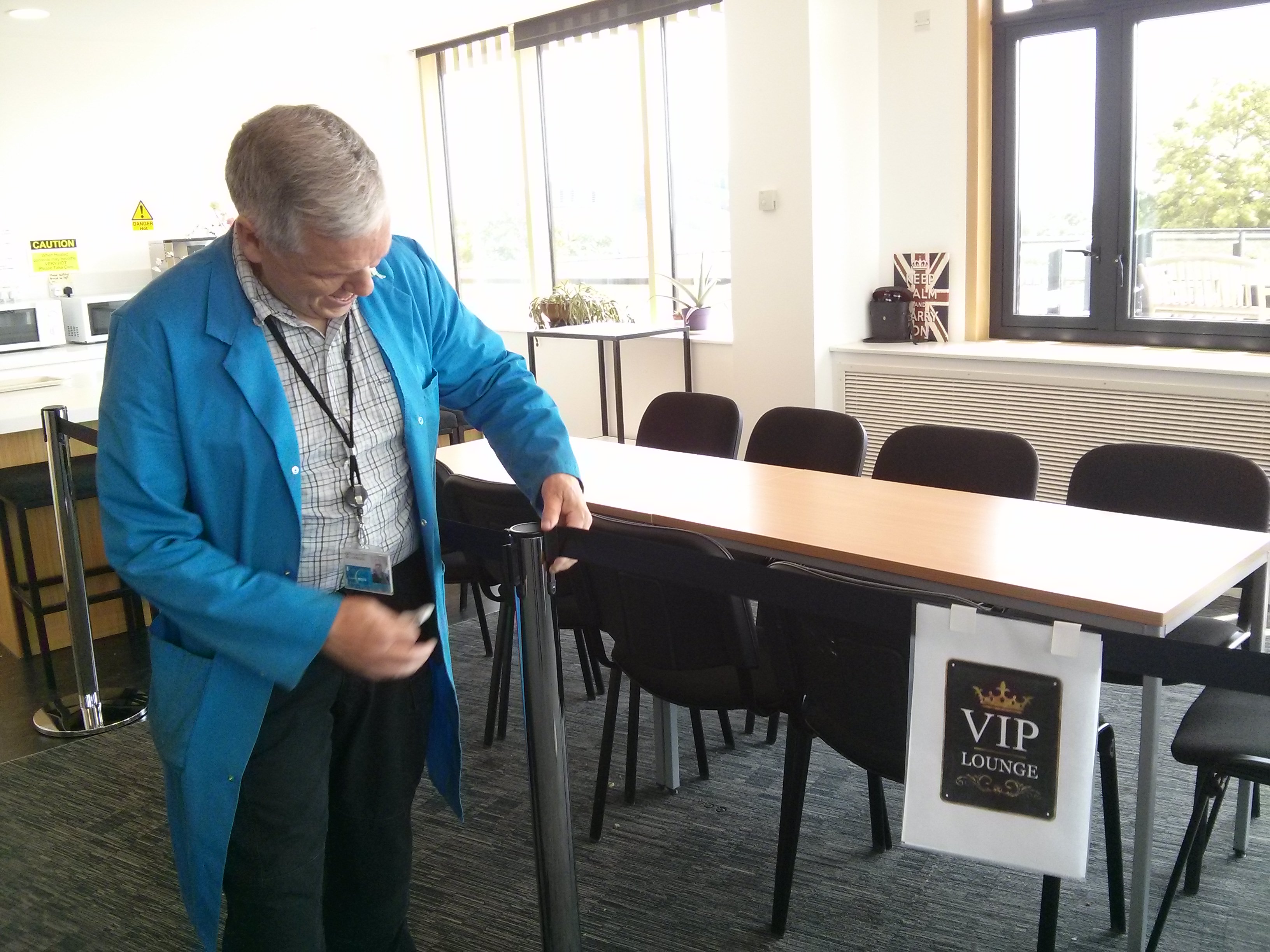Tony coralling a part of the tea room for the assistant staff to have "tea" |