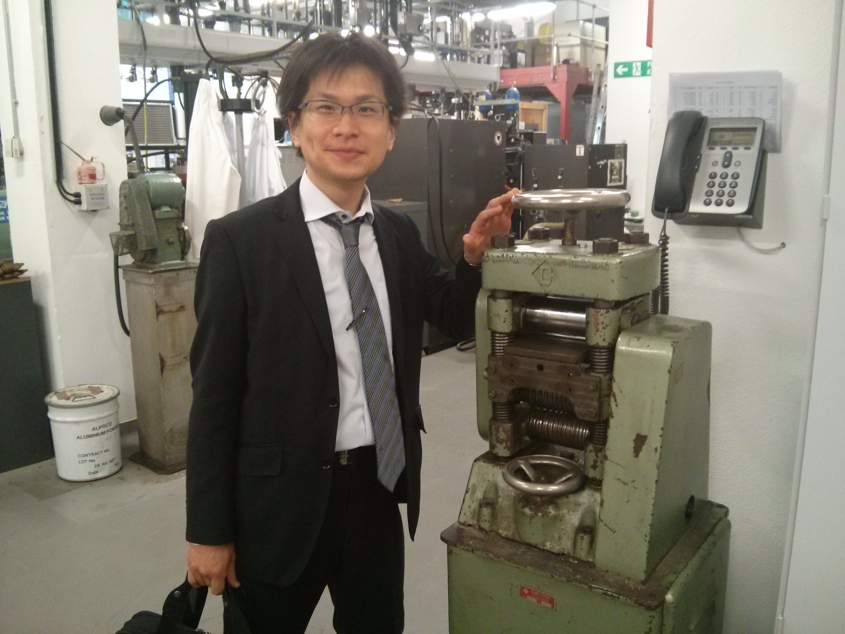 Chihiro Furusho at the University of Cambridge rolling mill |