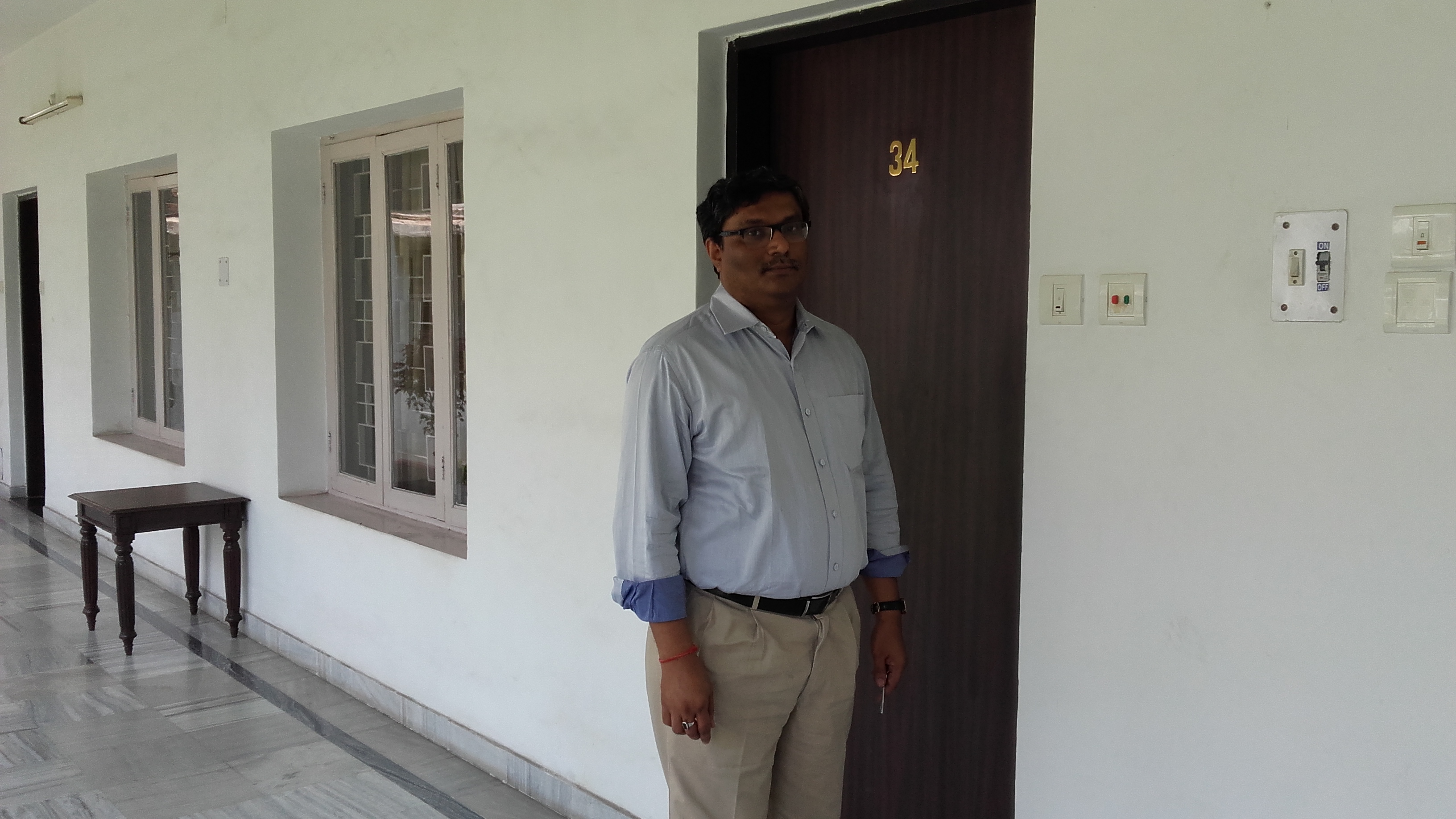 Professor Amitava De, IIT Bombay (PT Group member) arrives at the Tata Steel Guesthouse, for discussions with the welding team. |