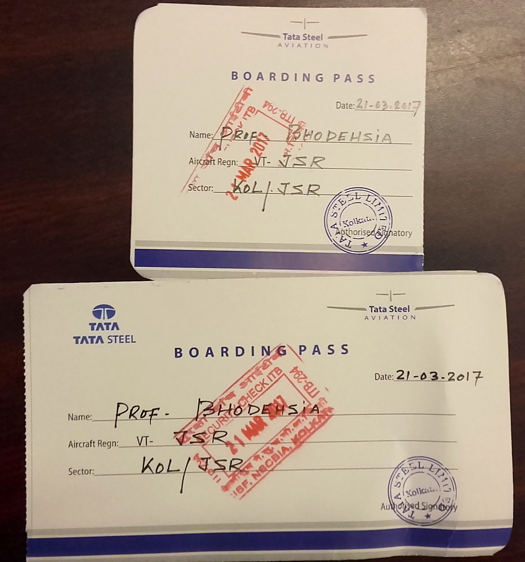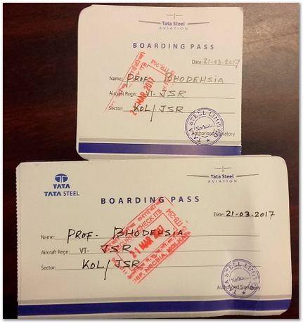 The boarding passes for the Tata Steel aircraft that took us from Calcutta to Jamshedpur |