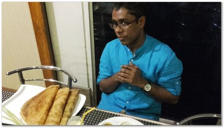 Saurabh Kundu (PT Group Member, Darwin College, Cambridge) took Harry to the Dhosa King where we ate an enormous amount. Each of us had four Dhosas of different kinds. One would have done but they were tasty, tasty, very very tasty. |
