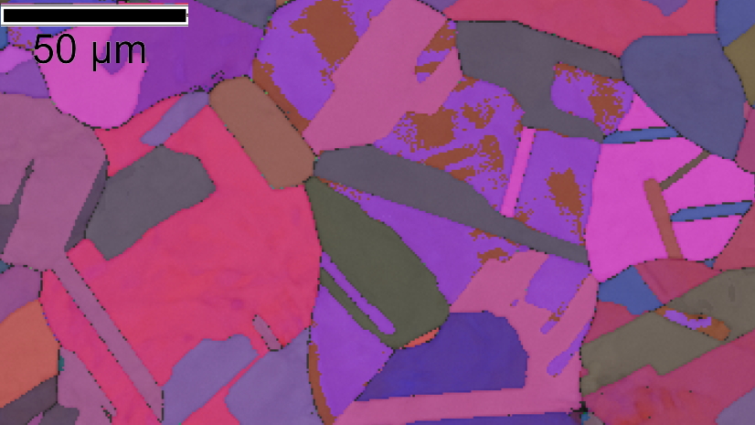 | Electron back scatter image illustrating annealing twins in austenitic stainless steel (image courtesy of Arpan Das). More details. |
